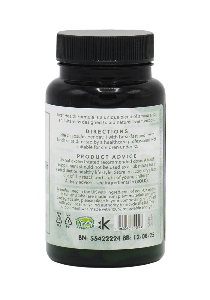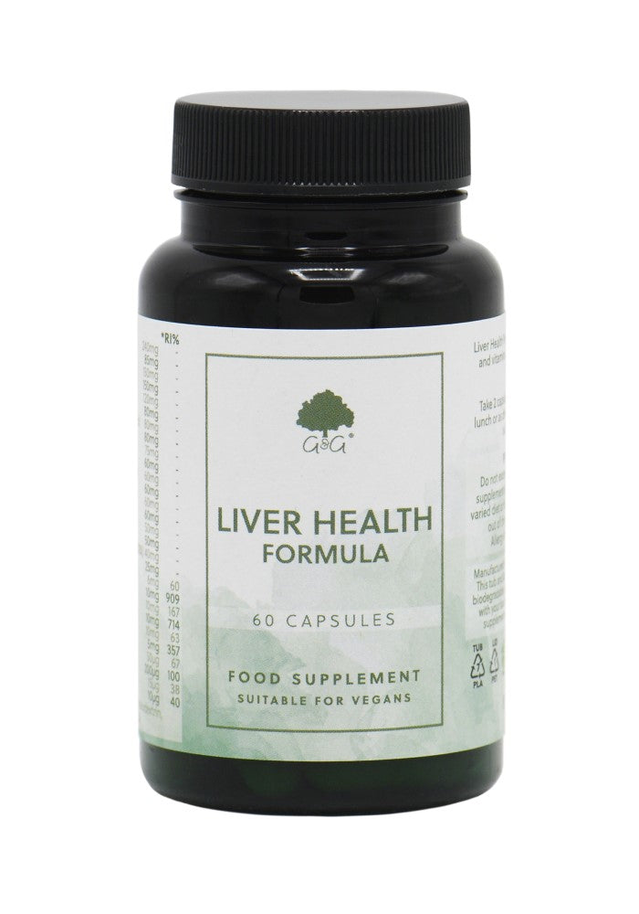 This formula contains choline which contributes to normal liver function. G&G's Liver Health Formula contains a blend of antioxidants, flavonoids, vitamins, minerals, amino acids, mushrooms and plant extracts. Vegetarian, vegan and approved kosher, it contains no allergens.