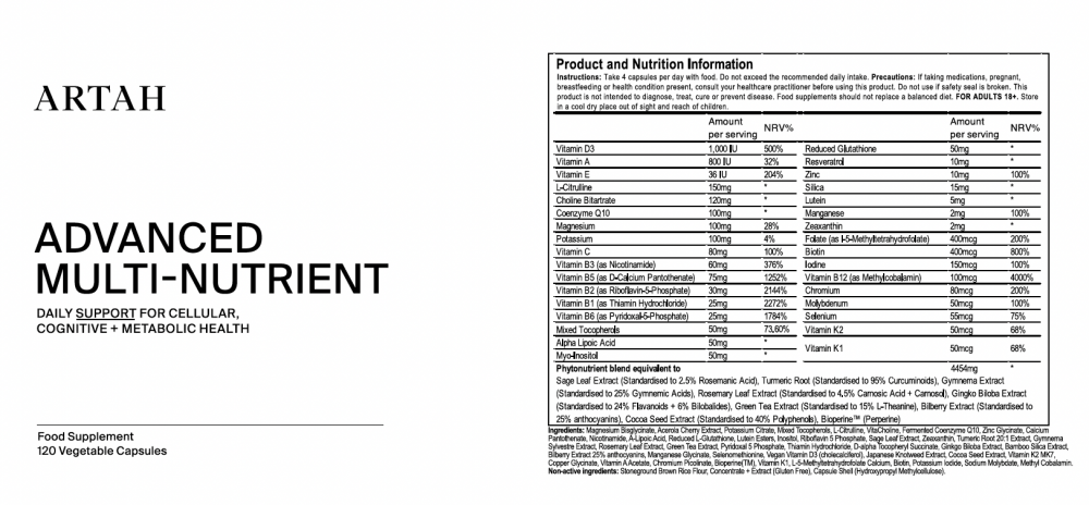 Artah Advanced Multi-Nutrient 120s