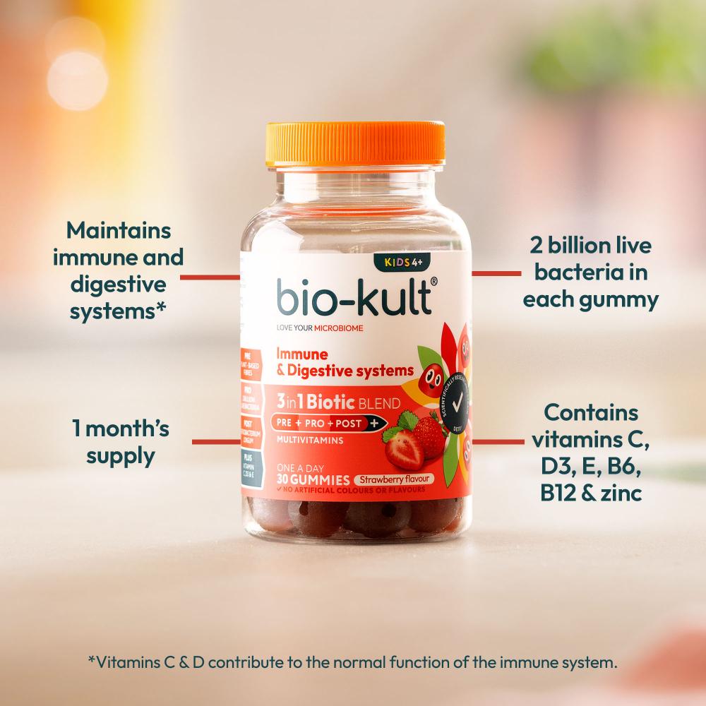Bio-Kult Kids 4+ 3 in 1 Biotic Blend Multivitamins Strawberry Flavour 30 Gummies