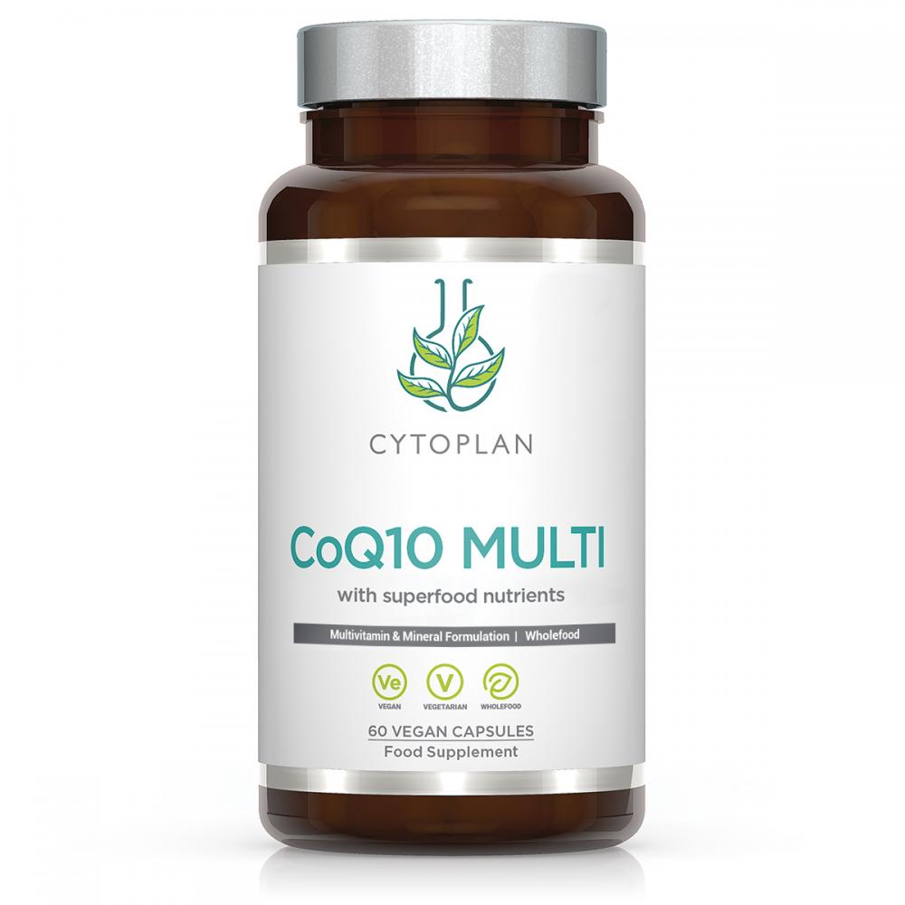 Ingredients: Vitamin C (as calcium ascorbate), magnesium (as citrate). Biodynamic & superfood blend including: Grape seed extract (Vitis vinifera) providing 95% proanthocyanidins, olive leaf extract (Plea eurpoa) providing 6% oleuropein, kale powder (Brassica oleracea), tomato powder (Solanum lycopersicum), beetroot powder (Beta vulgaris subsp. Vulgaris), turmeric powder (Curcuma longa). Beta 1-3, 1-6 glucan (from Saccharomyces cerevisiae), CoQ10 (as ubiquinone), chromium (from yeast), selenium (as selenomethionine), natural mixed tocopherols and d-alpha tocopherol succinate (providing vitamin E), vitamin B5 (as calcium pantothenate), zinc (as citrate), kelp extract (Laminaria japonica) providing iodine, ascorbyl palmitate, vitamin B1 (as thiamine hcl), vitamin B2 (as riboflavin), acerola extract (Malphighia punicifolia) providing vitamin C, vegan vitamin D3 (as cholecalciferol), vitamin B3 (as nicotinamide), beta carotene (Daucus carota), iron (from ferrous citrate), vitamin B6 (as pyridoxal 5 phosphate), manganese (as sulphate), vitamin K2 (MK-7), boron (as disodium tetraborate decahydrate), copper (as sulphate), molybdenum (as sodium molybdate), vitamin B12 (as methylcobalamin), folic acid (as 5-methyltetrahydrofolic acid), biotin, vitamin B12 (as adenosylcobalamin), hydroxypropyl methylcellulose (capsule shell)
