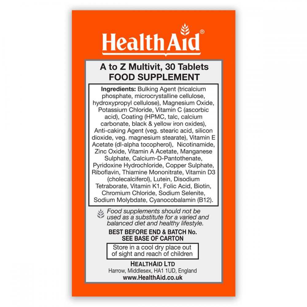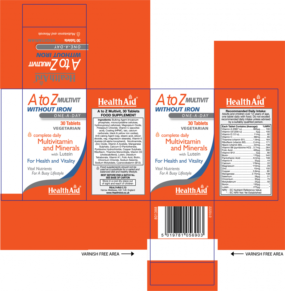 Health Aid A to Z Multivit WITHOUT IRON 30s