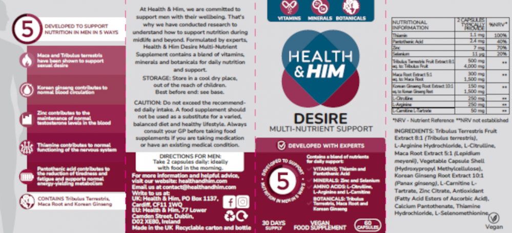 Health & Her Health & Him Desire Multi-Nutrient Support 60s