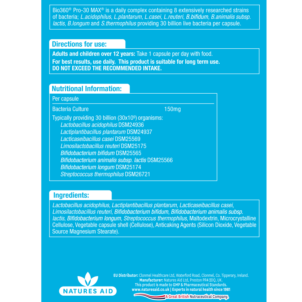 Natures Aid Bio360 Pro-30 Max (Super Strength) 60's