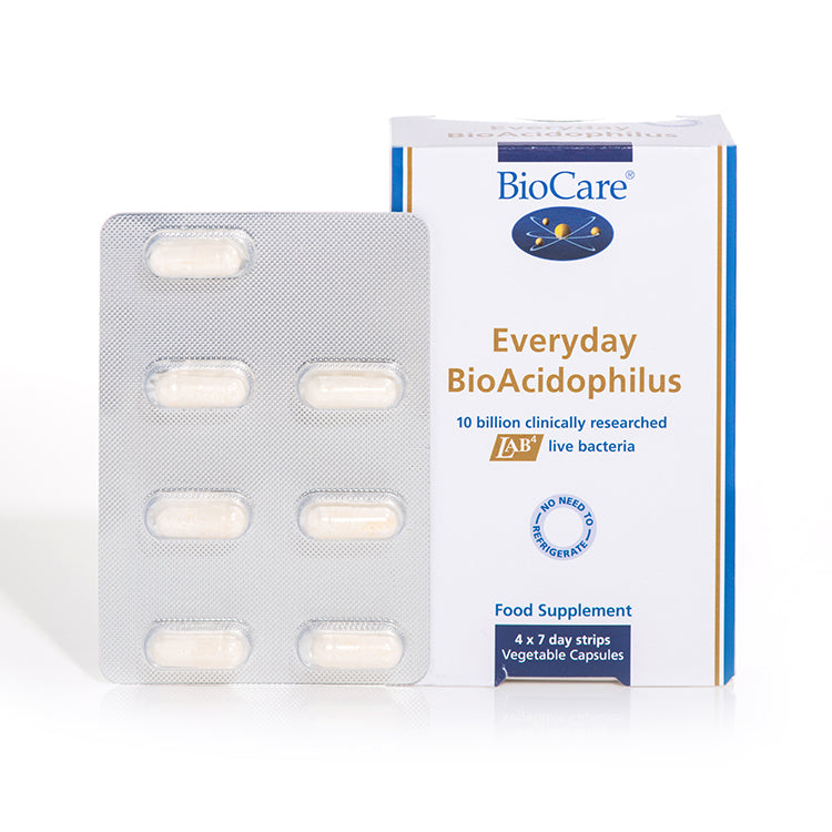 Everyday BioAcidophilus contains the clinically-researched LAB4 complex of live bacteria in handy 7 day strips, with no need to refrigerate.