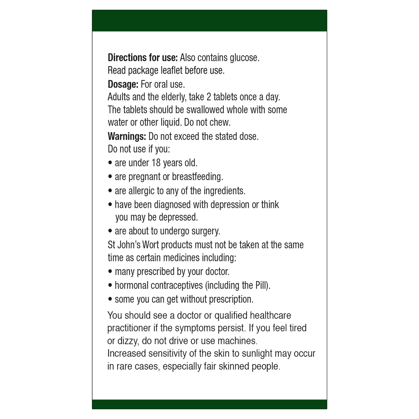 Ingredients: St. John's Wort Extract tabletted with Maltodextrin, silica colloidal anhydrous; (tablet core) calcium hydrogen phosphate dihydrate, cellulose microcrystalline, hydroxypropylmethyl cellulose, croscarmellose sodium, silica colloidal hydrated, magnesium stearate; (tablet coating) sodium carboxymethylcellulose, lecithin, dextrose monohydrate, sodium citrate, dextrin.