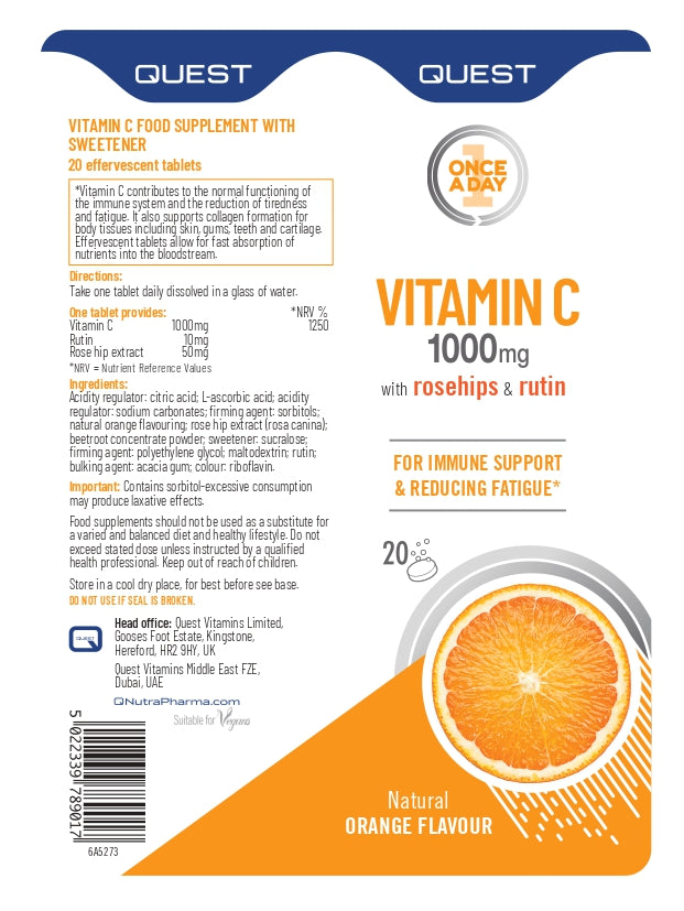 Quest Vitamins Vitamin C 1000mg with Rosehips & Rutin Effervescent 20s