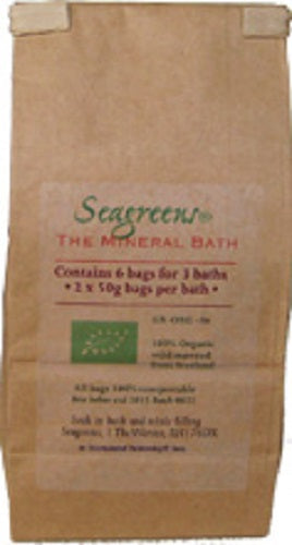 Directions: Simply drop 2 bath bags from your pack of Seagreens' The Mineral Bath into the water as you pour your bath. Then soak in the rich mineral goodness of 100% Seagreens Ascophyllum nodosum. Each pack contains six bath bags - enough for 3 baths per pack. For a seriously therapeutic bath, use 2 bags per bath - that's 100 grams (3.52 oz) of Seagreens per bath.