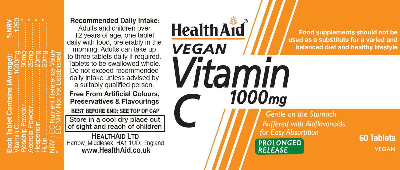Health Aid Vegan Vitamin C 1000mg Prolonged Release 60's