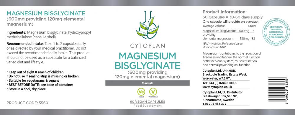 Ingredients: Magnesium bisglycinate,hydroxypropyl methlycellulose (capsule shell)