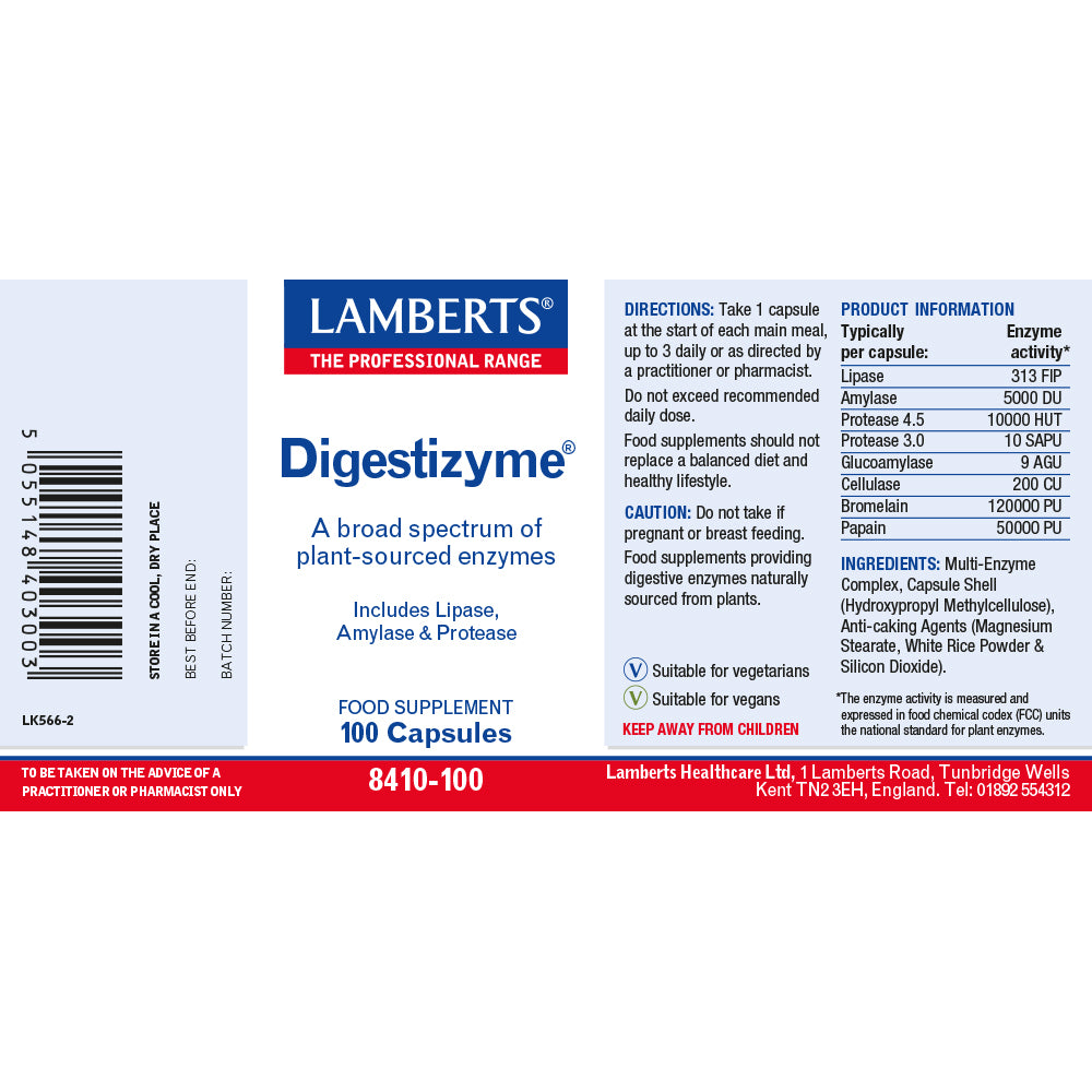 Ingredients: Multi-Enzyme Complex, Capsule Shell (Hydroxypropyl Methylcellulose), Anti-caking Agents (Magnesium Stearate, White Rice Powder, Silicon Dioxide)