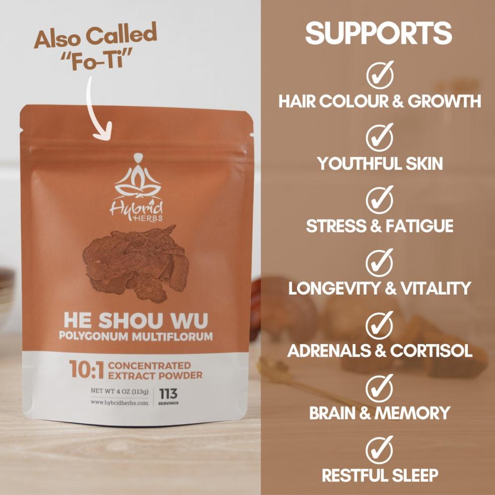 He Shou Wu has been used for thousands of years to support the health of the kidneys, increase vitality and promote the health of the hair.