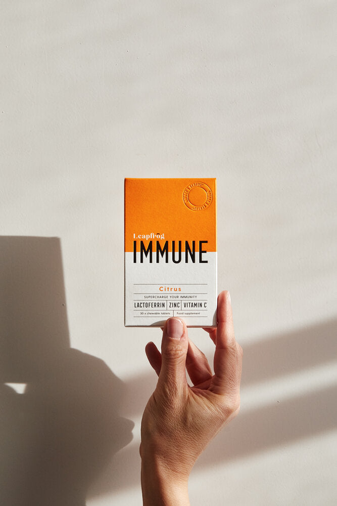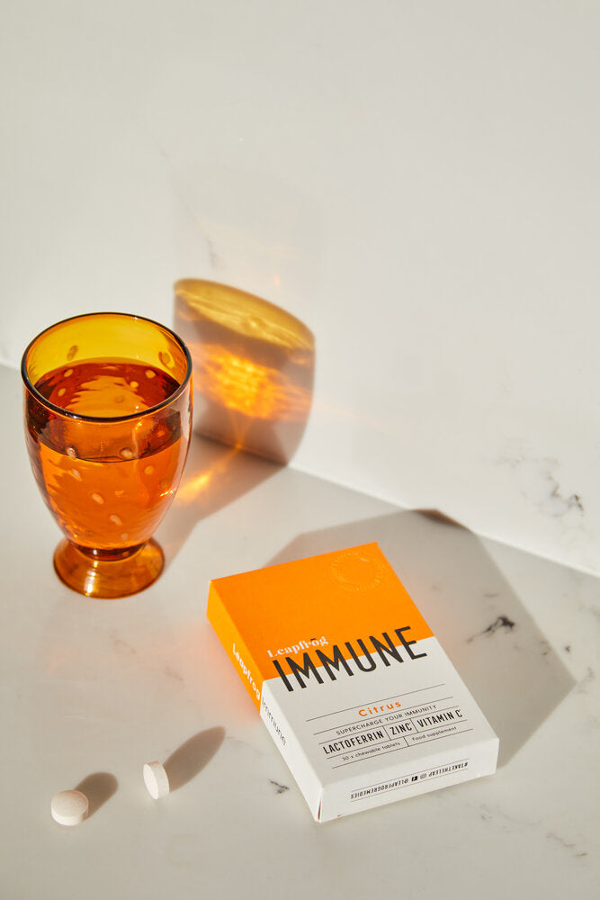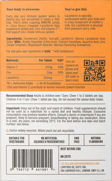 Ingredients: Sweeteners (Xylitol, Isomalt), Proferrin® (Bovine Lactoferrin from Cow's Milk), Acidity Regulator (Citric Acid), Calcium Ascorbate, Ascorbic Acid, Zinc Citrate Dihydrate, Magnesium Stearate, Natural Flavouring Substances