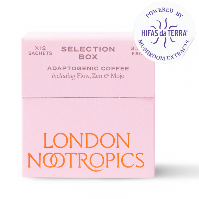 London Nootropics Selection Box Adaptogenic Coffee Flow, Zen & Mojo 12 Sachets (PINK)