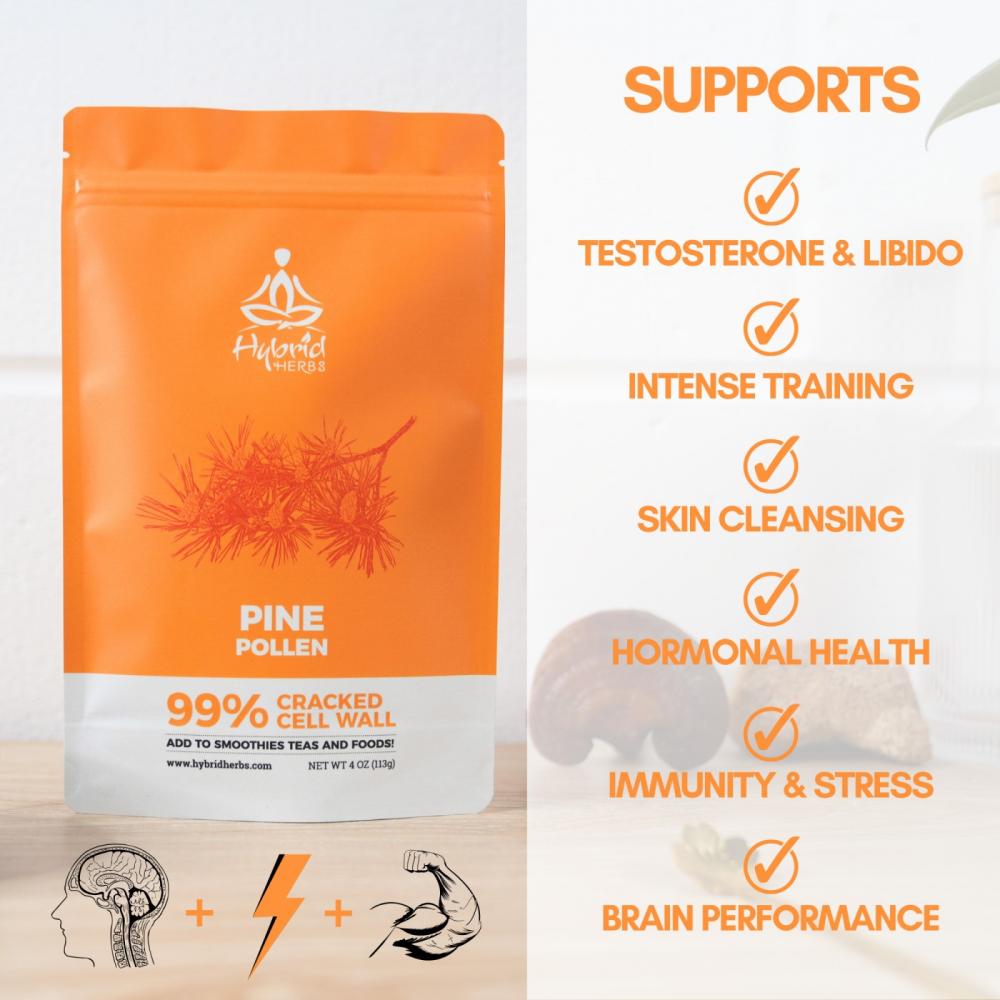 Pine Pollen is a superfood, rich in vitamins, minerals, amino acids and health compounds. Hybrid Herbs Pine Pollen is the highest quality, 99% cracked cell wall. This ensures that the product is over 99% digestible.