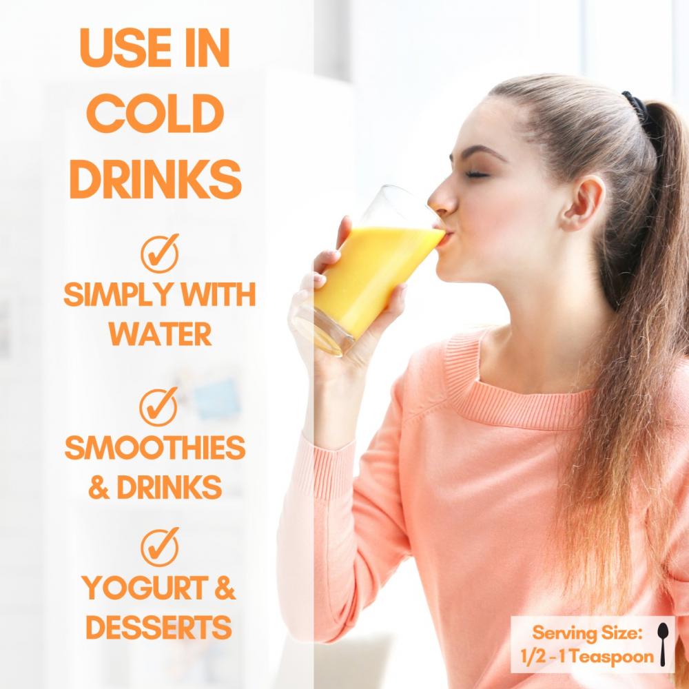 Directions: Add one teaspoon to your favourite smoothie or foods.
