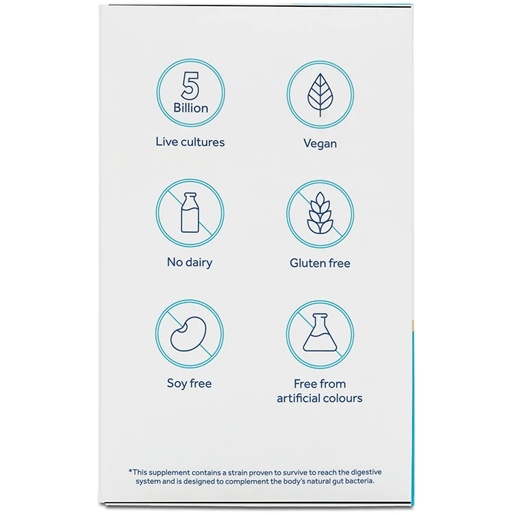 Ingredients: Live cultures: Saccharomyces boulardii; vegetarian capsule: hydroxypropyl methylcellulose