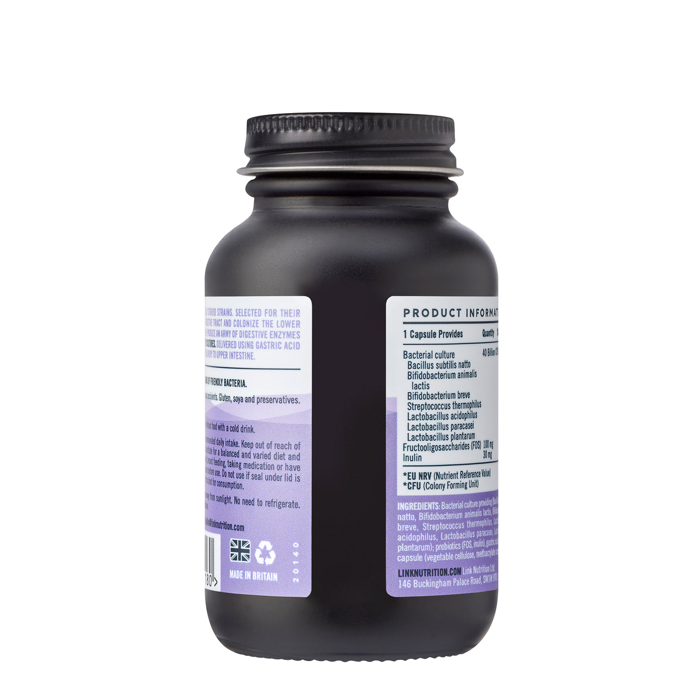 Ingredients: Bacterial culture providing (Bacillus subtilis natto, Bifidobacterium animalis lactis, Bifidobacterium breve, Steptococcus thermophilus, Lactobacillus acidophilus, Lactobacillus paracasei, Lactobacillus plantarum); prebiotics (FOS, inulin)