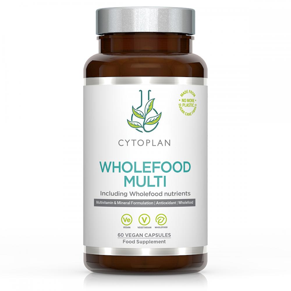 Ingredients: Broccoli powder (brassica oleracea), Vitamin C (as ascorbic acid), Magnesium (as citrate), Chromium (from yeast), Selenium (from yeast), Vitamin B5 (as calcium d-pantothenate), Vitamin E (as D-Alpha tocopherol acid succinate), Carrot powder (Daucus carota), Spirulina powder (Arthrospira plantensis), Artichoke (Cynara scolymus) leaf extract 40:1, Alfalfa (Medicago sativa) powder, Zinc (as citrate), Kelp extract (Laminaria japonica) providing iodine, Vitamin B1 (as thiamin Hcl), Vitamin B2 (as Riboflavin), Vitamin D3 (cholecalciferol) from lichen (corn syrup solids, arabic gum, medium chain triglycerides, silicon dioxide, sodium ascorbate, d-alpha tocopherol), Vitamin B3 ( as nicotinamide), Beta carotene (Daucus carota), Acai berry (Euterpe oleracea) powder, Beetroot powder (Beta vulgaris L), Silicon dioxide, Vitamin B6 (as P5P), Iron (as ferrous fumarate), Boron (as Disodium tetraborate decahydrate), Manganese sulphate, Acerola (Malpighia punicifolia) extract (providing vitamin C), Copper sulphate, Vitamin K2 (MK-7), Folic acid (as 5-methyltetrahydrofolic acid), Vitamin B12 (as methylcobalamin), Sodium molybdate (providing molybdenum), Biotin, Hydroxypropyl methylcellulose (capsule shell).